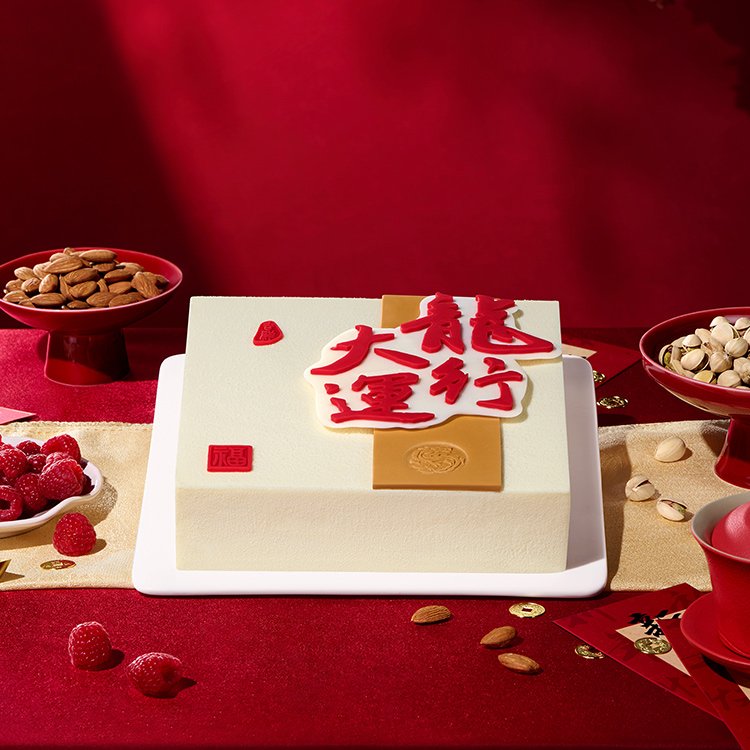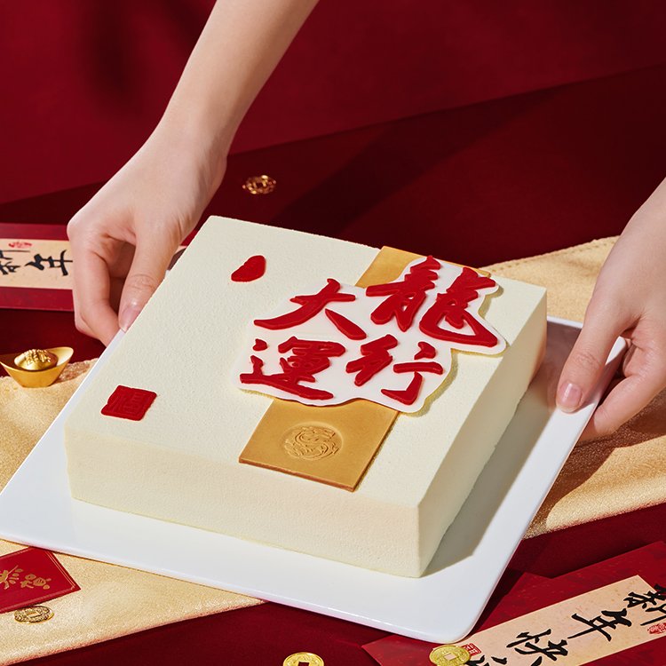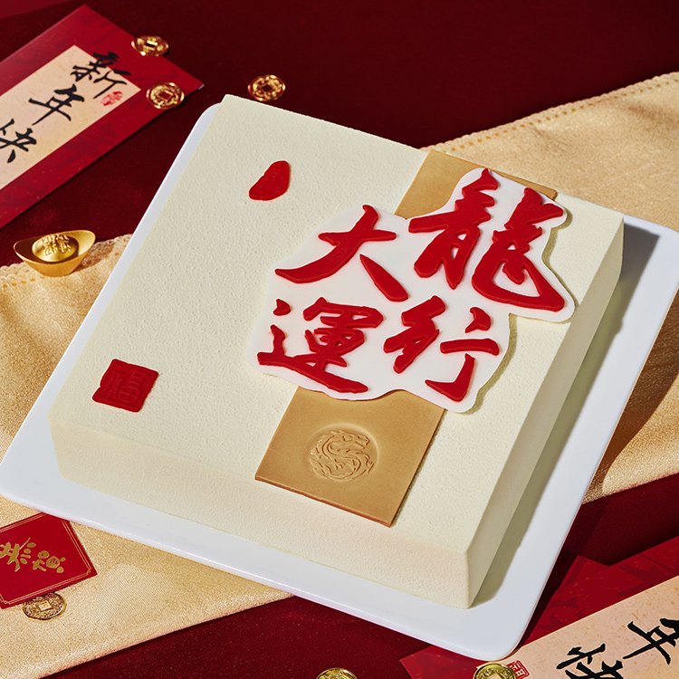 龙的传人过龙年,似乎比其他的年份更加的有意义。壹点壹客“龙行大运”蛋糕,手工翻糖定制的压印着龙图腾的金色腰封,巧克力刻制的“龙行大运”书法落款铿锵有力,“吉祥”和“福”的火漆印章,每一个细节都将龙的传人展现得淋漓尽致。愿每位品尝蛋糕的家人们,龙年行大运,吉祥顺遂,多福又多金。